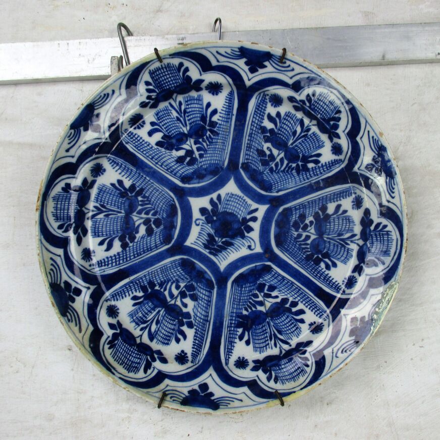 18th Century Large Delft Wall hanging Charger Plate Blue White Antique