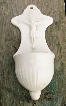 Antique White Holy Water Font Porcelain Church Wall Hanging Holland Maastricht