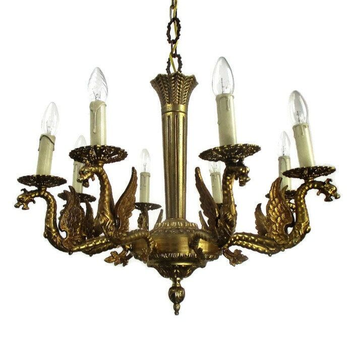 Gothic Ornate Brass 8 Arms Lights Chandelier Revival Dragons Empire Impressive