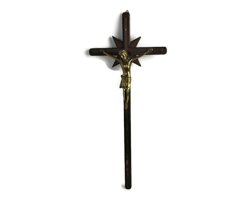 Hanging Crucifix Cross Wood Wooden Brass Corpus Vintage Jesus Christ