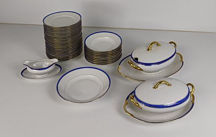 Antique 1900 Soup Plates 7 pieces Boch Mettlach rare Blue Rose Art Nouveau