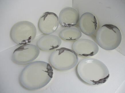 Set of 6 French Oyster Plates Porcelain Faience de St Amand Hand Painted Classy