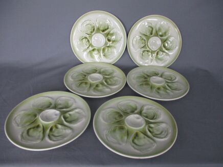 Set of 6 French Oyster Plates Porcelain Faience Hand Painted st Clément style