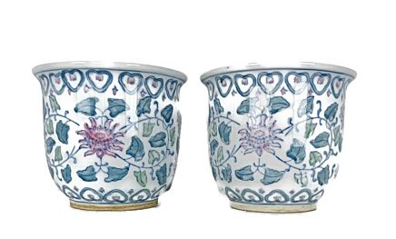 couple Chinese Planters Indoor porcelain hand painted flower pattern vintage family Rose