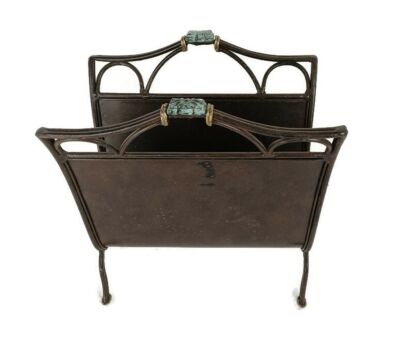 Retro Newspaper Basket magazine rack Side Table Wrought iron Ceramic tiles vintage