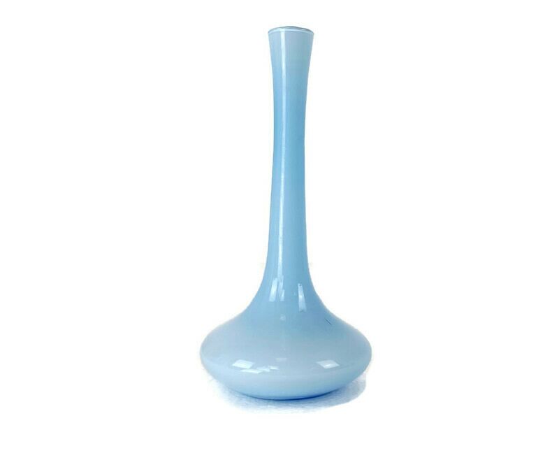 Opaline Art glass Vintage azzuro Blue Small hand blown vase vintage lovely