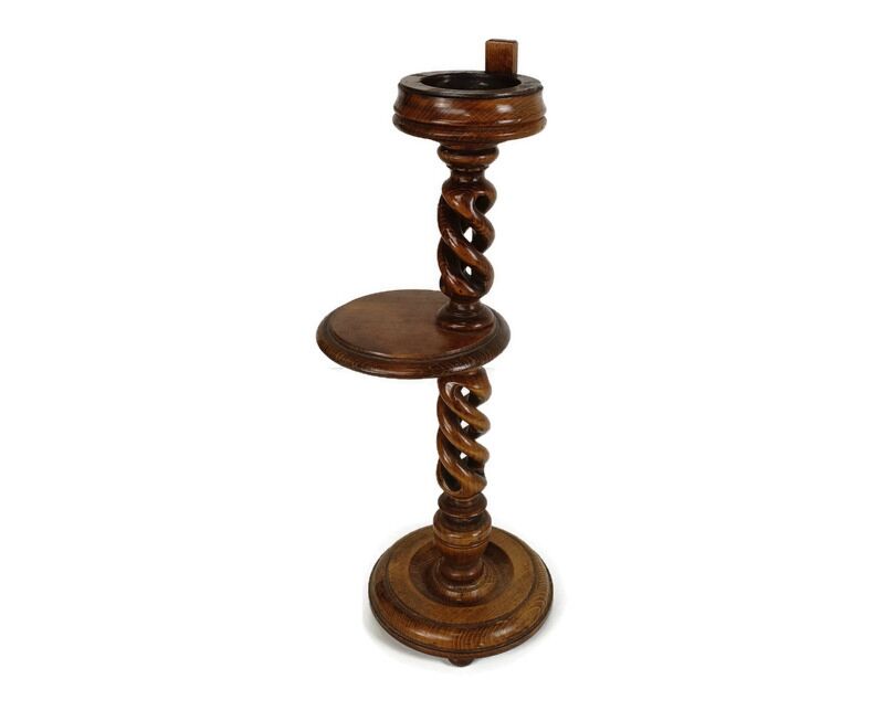 Open barley twist hand carved wood Oak Plant stand Pedestal Side table bonsai stand vintage