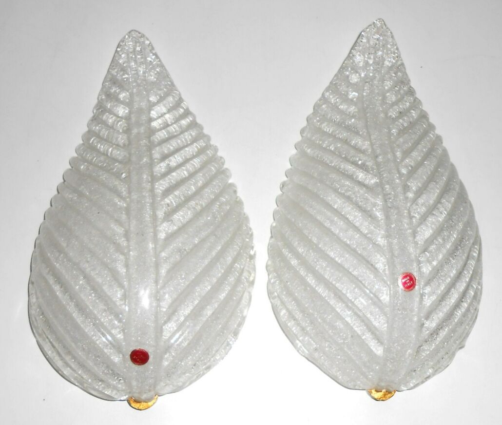 Pair Huge XL Vintage Barovier Rugiadoso Leaf Wall Sconce Shades Murano