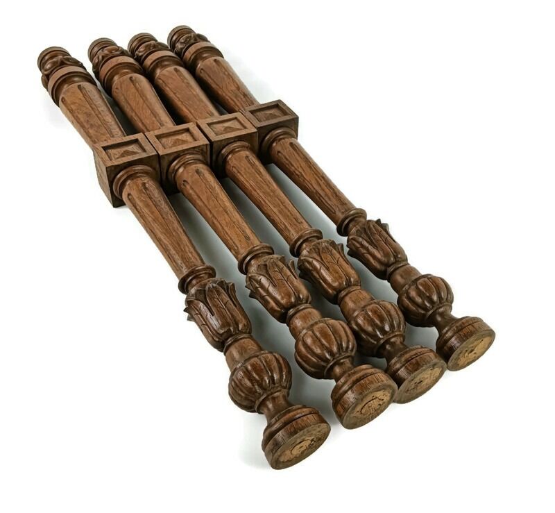 set of 4 corbels Poles Finials, salvaged architectural carved wood antique reclaimed