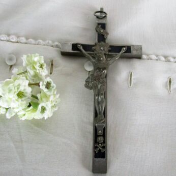 Modernist Ceramic Black Tile Wall Hanging Small Jesus Christ Crucifix Mettlach