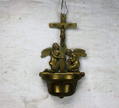Vintage French Holy Water Font Vessel Bisque Porcelain Angel Collector HTF 7.4"