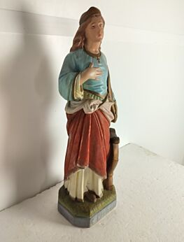 Neo gothic plaster Statue Jesus Christ polychrome Holy Sacred Heart antique