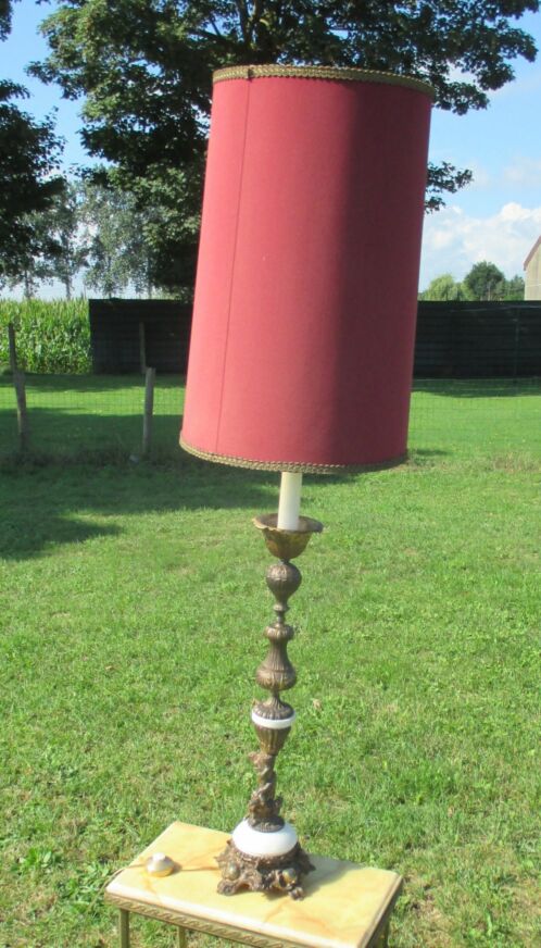 Vintage Brass Marble Ornate Standing Table Floor Lamp Putti Red Shade
