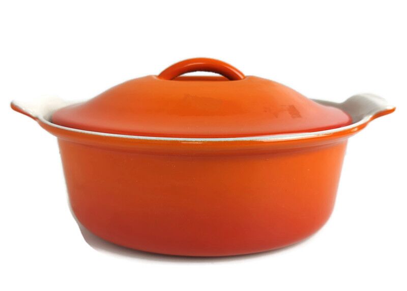 vintage French Le Creuset Red Cast Iron Dutch Oven Casserole nr 22 Small Oval