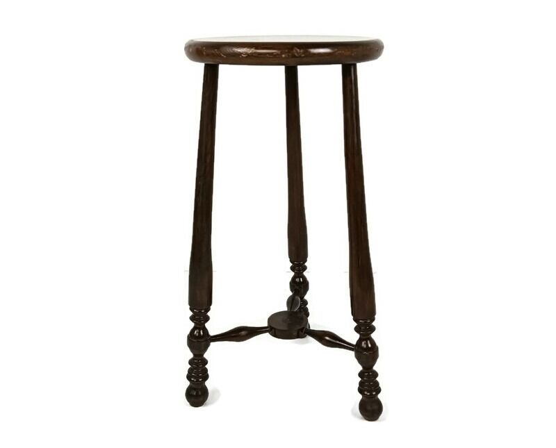 Vintage Wood Side Occasional Table Pedestal Plant Stand Two Tier Barn Country