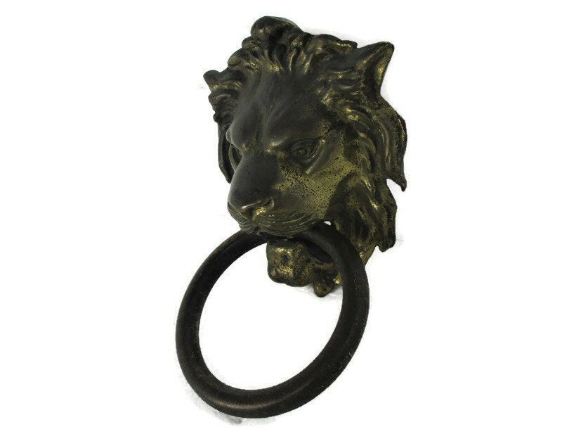XL Brass Door Portal Knocker Lions Head Ring Architectural Gorgeous Reclaimed