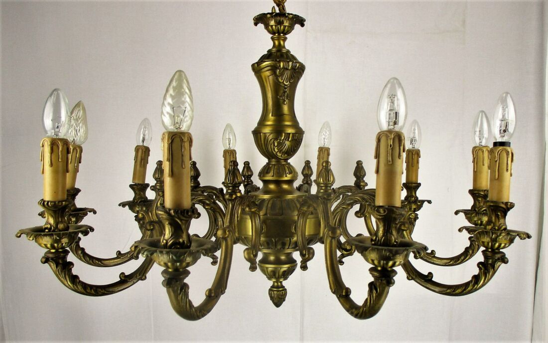 XL Bronze 10 Arm Lights Chandelier Hollywood Regency Exceptional Working